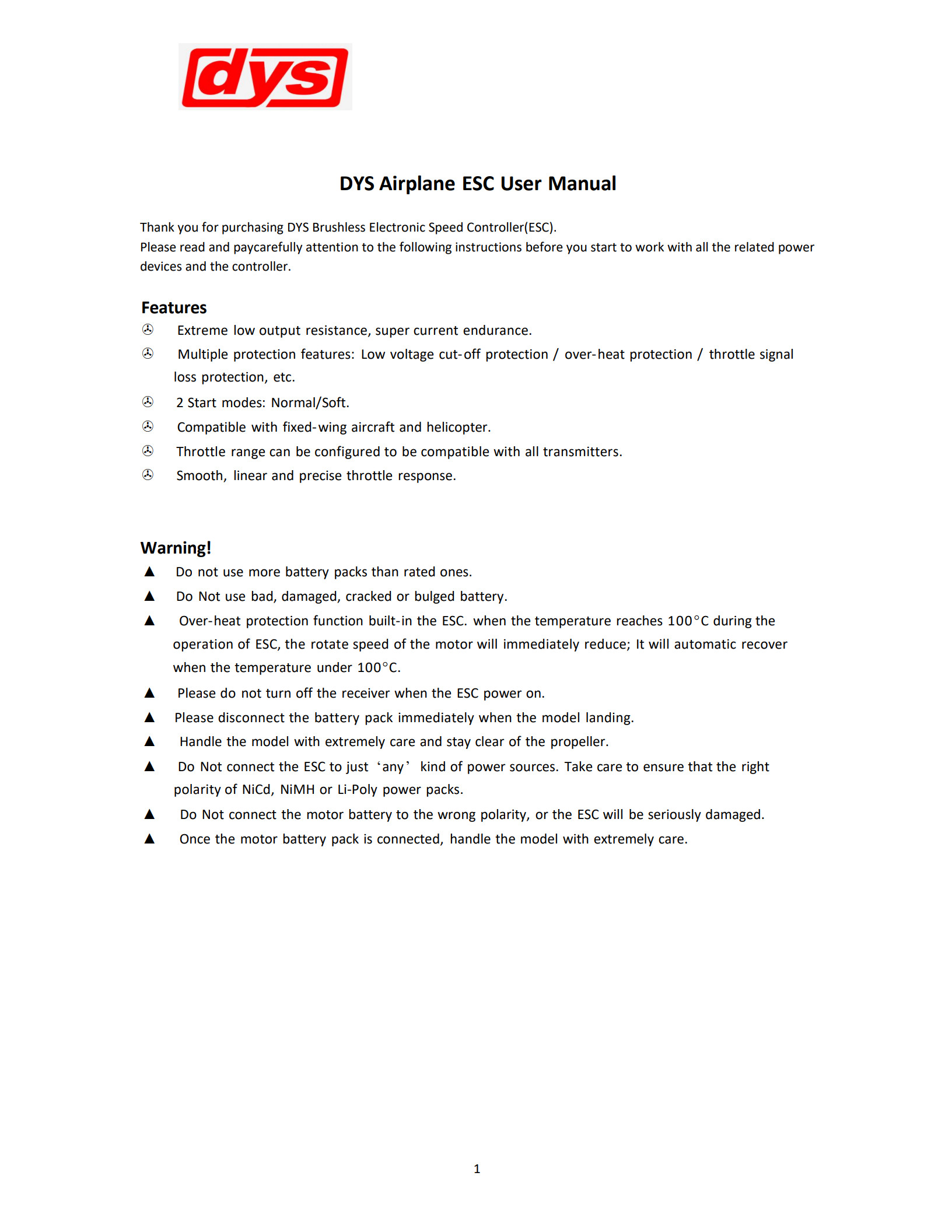 Model: DYS 100A ESC