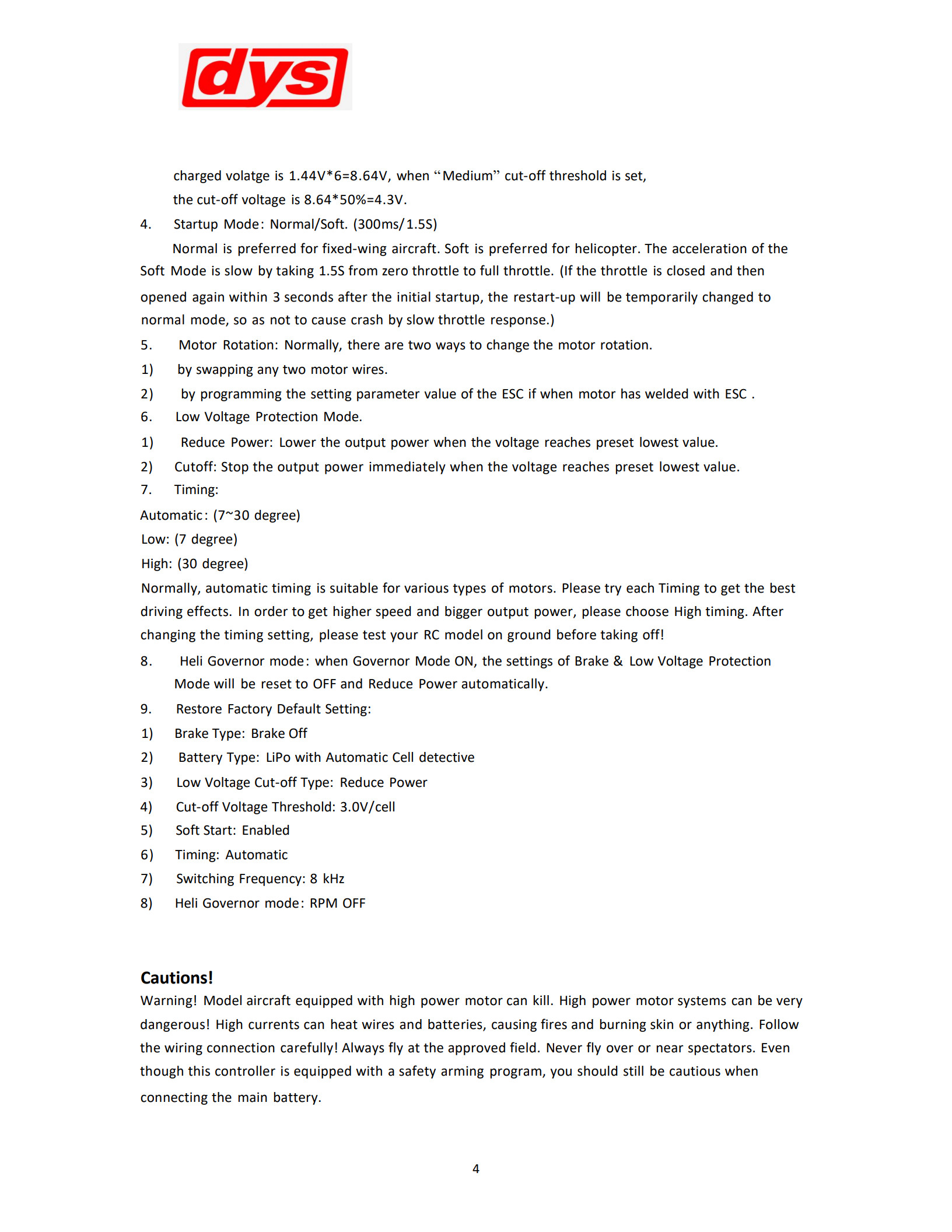 DYS electronic governor features: