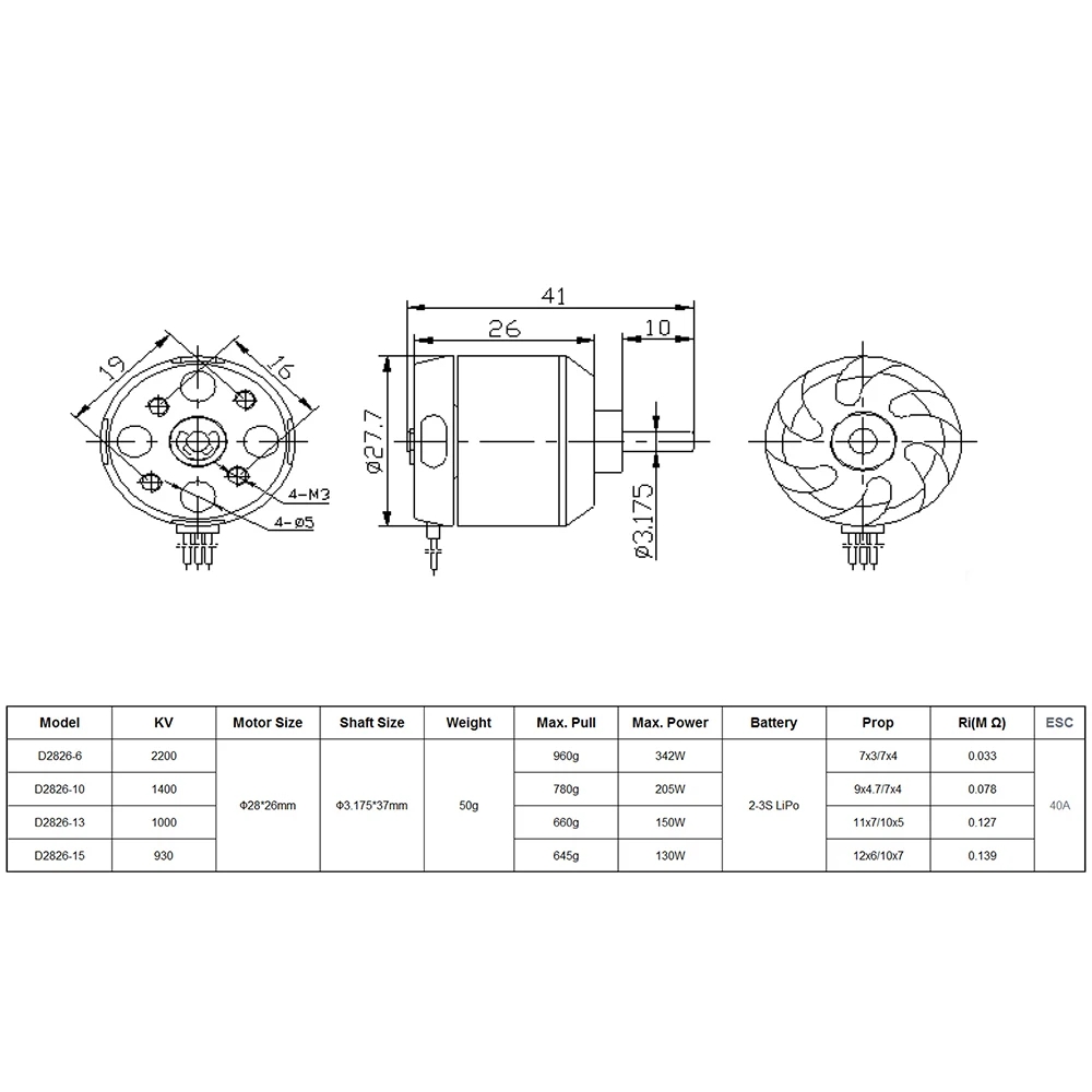 Model number: D2826 2200KV/1400KV/1000KV/930KV Brushless Motor.