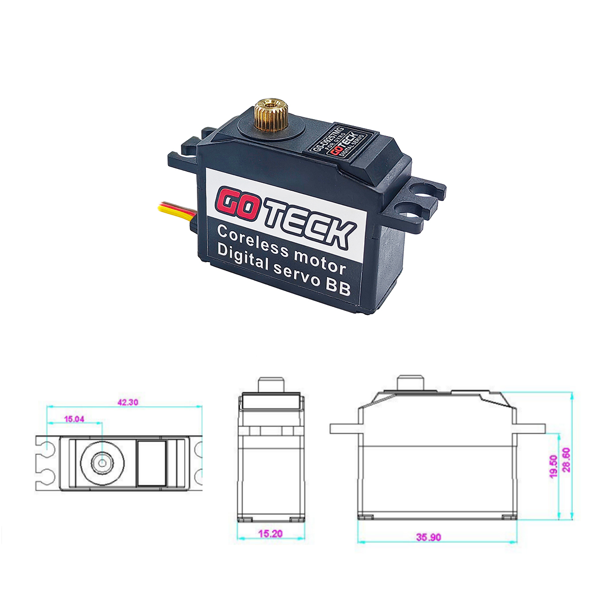GOTECK 25G Servo high-precision Full Metal Gear (more durable and prevent tooth sweeping) with Hard Anodizing, combined with Dual Ball Bearings, has a longer service life.