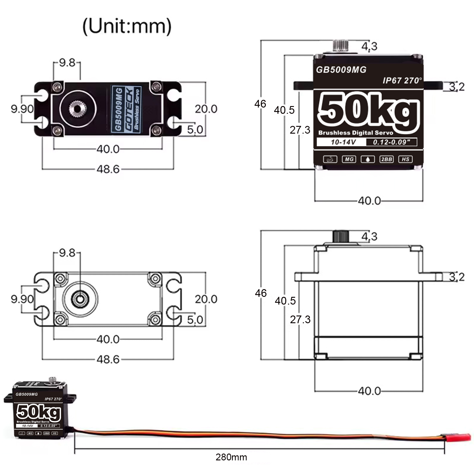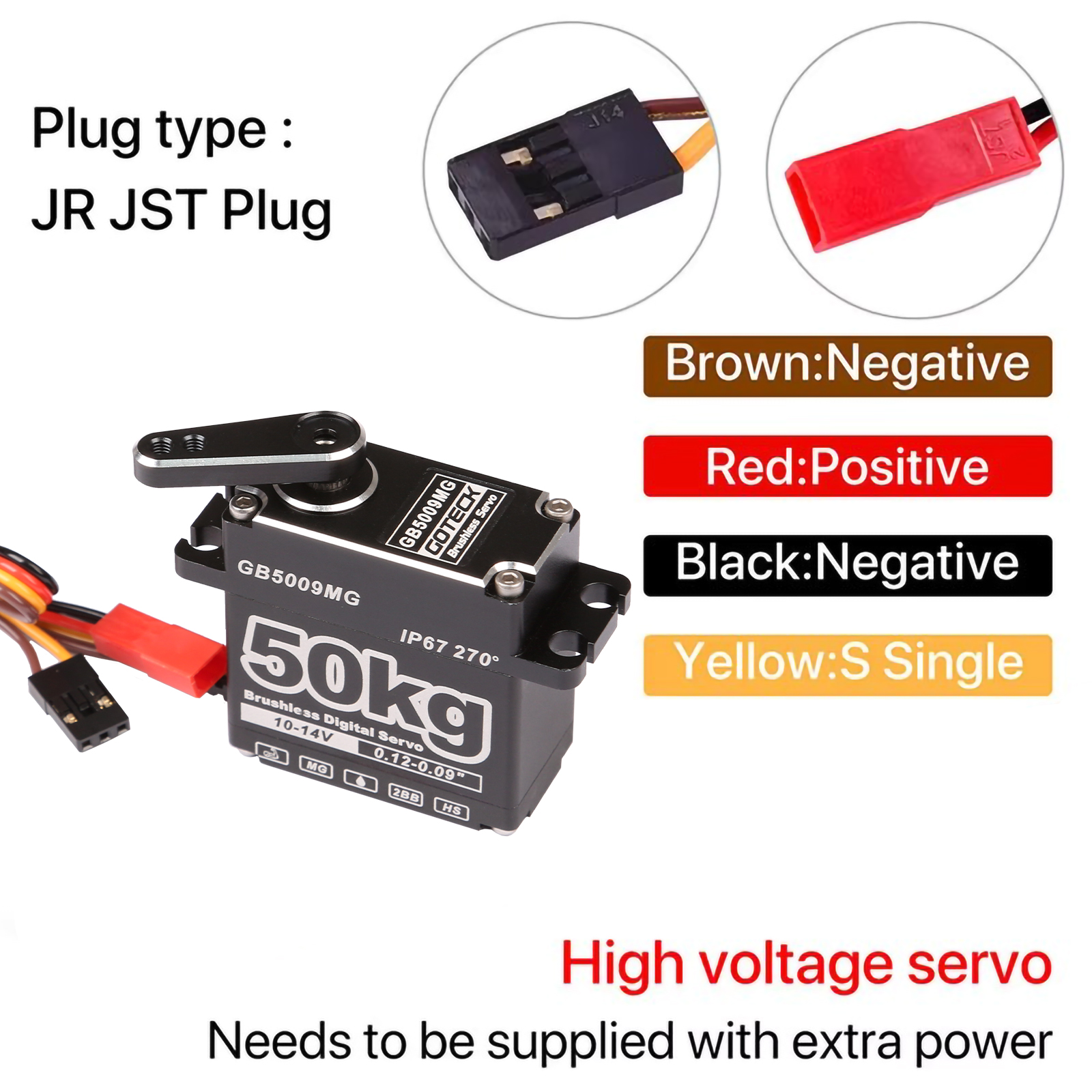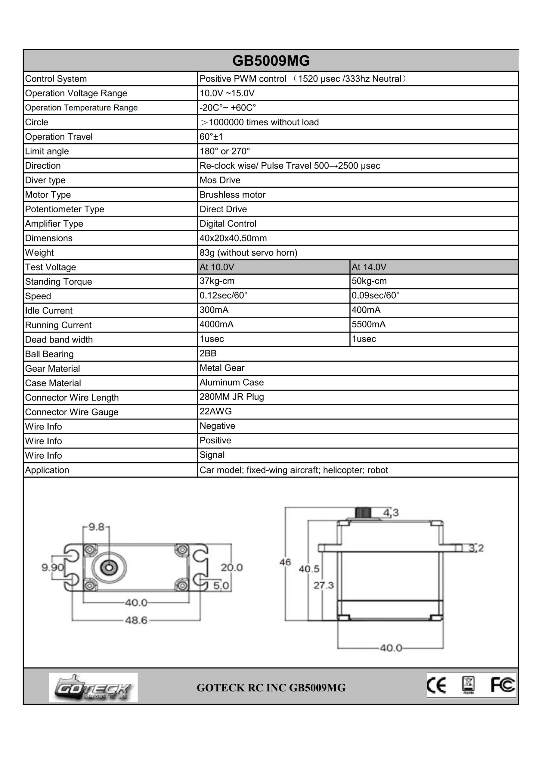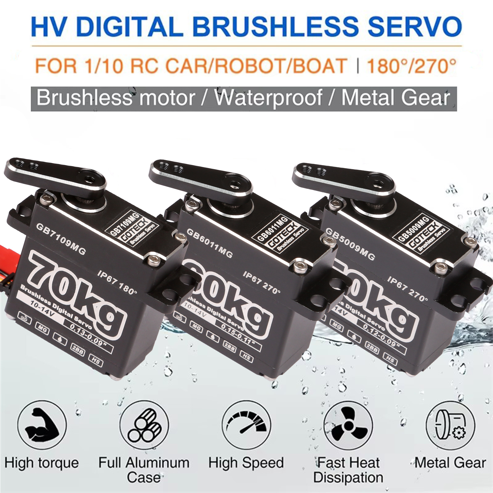 GOTECK GB5009MG Servo is a Brushless Digital Servo,which Feature is Super Speed and High Power!It Delivers Incredible Power and Can Be Used for RC Helicopters,Airplanes,Cars,and Trucks When a Standard Servo Is Required!